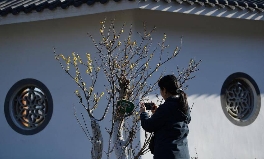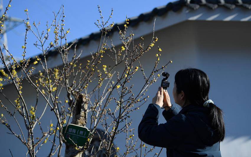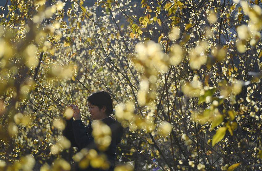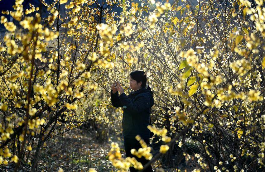 ▲▼游客在保康县蜡梅公园拍摄盛开的蜡梅。